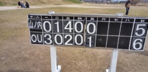 序盤から一進一退の攻防が続き、スコアボードも動き続ける試合展開となりましたが、結果はタイムオーバーにより5-6のサヨナラ負けとなりました。あと一歩及ばず非常に悔しい結果ではありますが、最後まであきらめずにボールを追いかける子どもたちの姿勢は素晴らしいものでした。